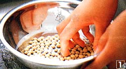 (2)洗った粒(イオンセラミック)100gと水道水1Lをガラス、陶器、ステンレス製のいずれかの容器に入れます
